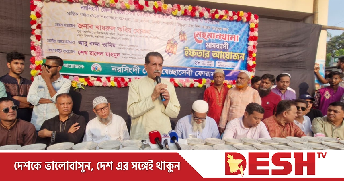 শুক্রবার (২৮ মার্চ) বিকেলে নরসিংদী রেলওয়ে স্টেশনে নরসিংদী জেলা স্বেচ্ছাসেবী ফোরামের মেহমান খানায় অসহায় ও দুস্থদের মাঝে ইফতার বিতরণ অনুষ্ঠানে প্রধান অতিথির বক্তব্যে তিনি এসব কথা বলেন।