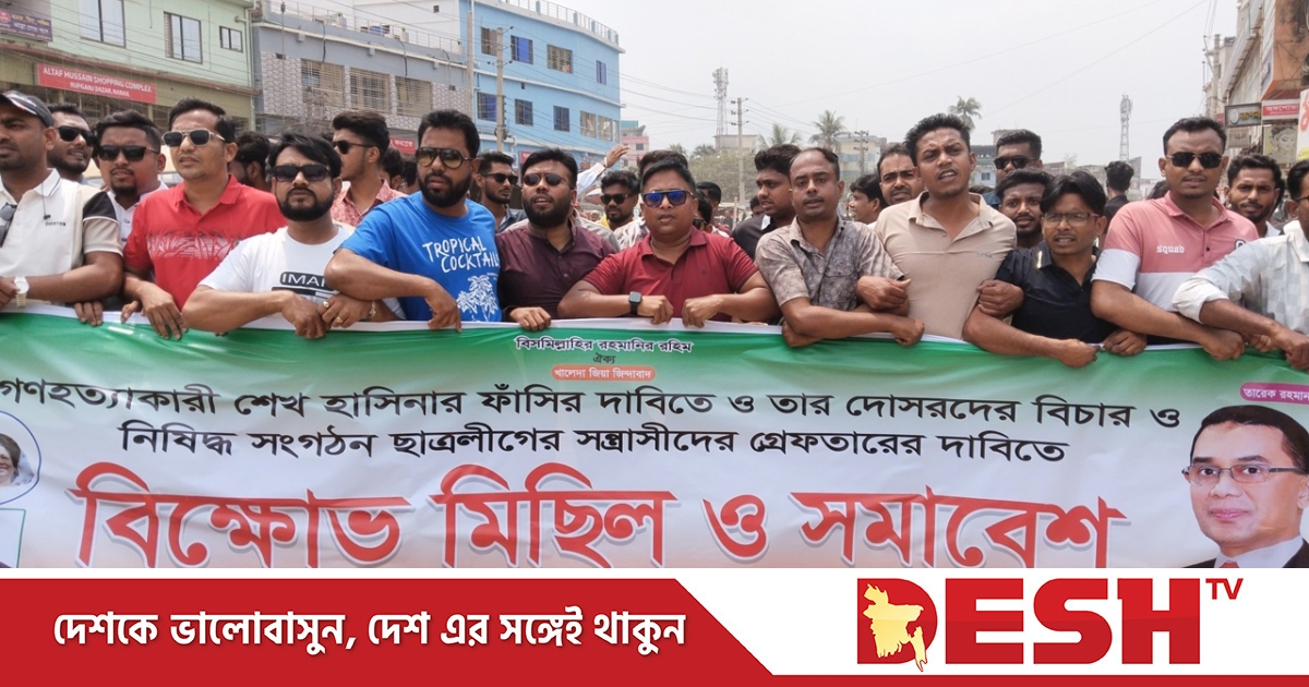 গণহত্যাকারী শেখ হাসিনার ফাঁসির দাবিতে ও তার দোসরদের বিচার ও নিষিদ্ধ সংগঠন ছাত্রলীগের সন্ত্রাসীদের গ্রেপ্তারের দাবিতে নড়াইলে বিক্ষোভ মিছিল ও সমাবেশ অনুষ্টিত হয়েছে।