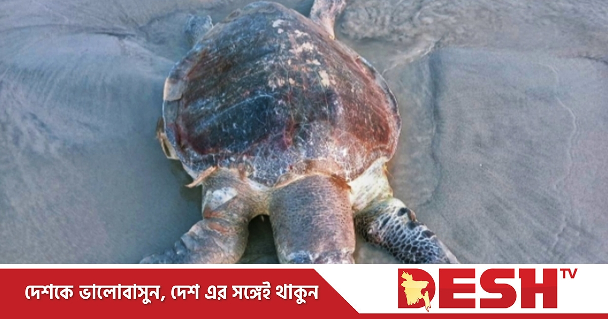 পটুয়াখালীর কুয়াকাটার লেম্বুর বন সংলগ্ন সমুদ্র সৈকতে অলিভ রিডলি প্রজাতির একটি মৃত সামুদ্রিক কচ্ছপ ভেসে এসেছে।