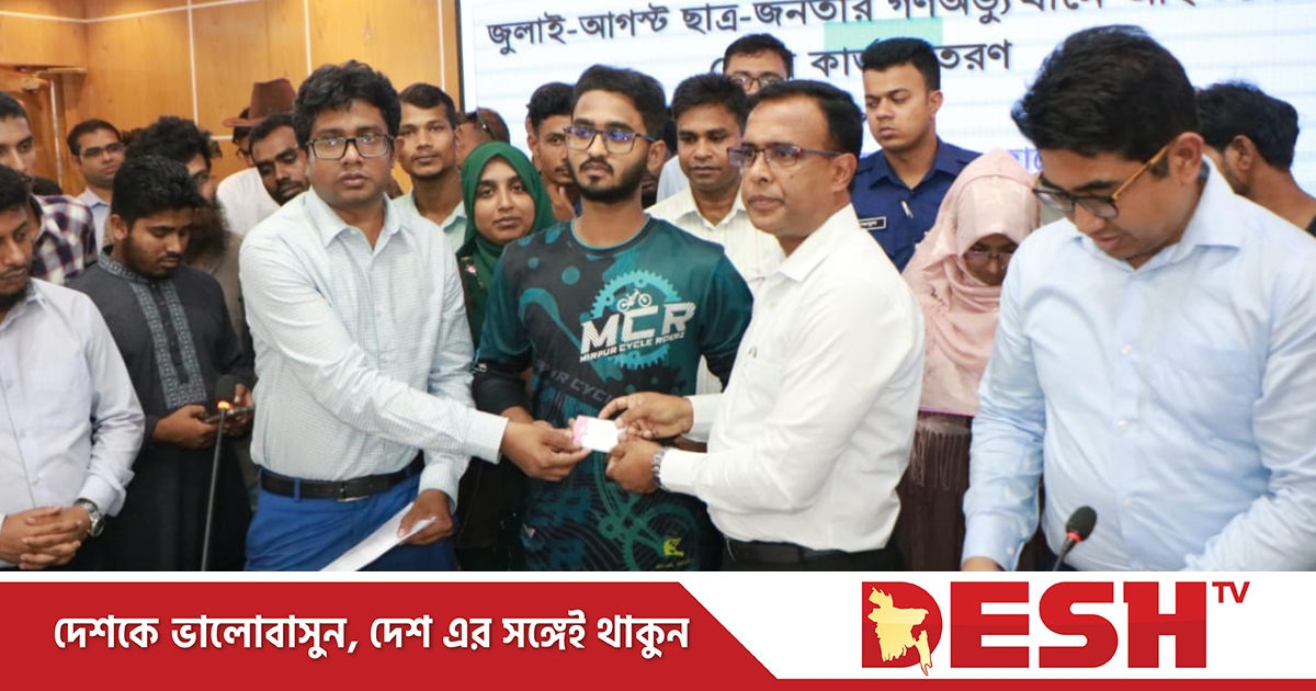 জেলা প্রশাসক মোহাম্মদ দেলোয়ার হোসেনের সভাপতিত্বে হেলথ কার্ড বিতরণ অনুষ্ঠানে উপস্থিত ছিলেন- অতিরিক্ত জেলা প্রশাসক সার্বিক লুসিকান্ত হাজং, ডেপুটি সিভিল সার্জন ডা. সব্যসাচী দাসসহ জুলাই-আগস্টের গণঅভ্যুত্থানে আহত ছাত্র জনতা।