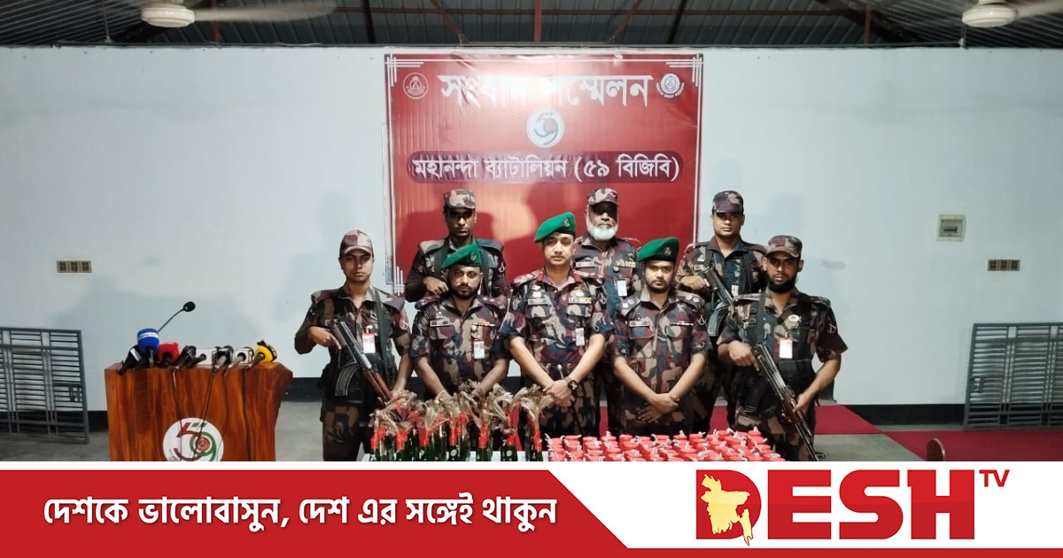 বৃহস্পতিবার রাত সাড়ে ৮টায় মহানন্দা ব্যাটালিয়ন সদর দপ্তরে এক সংবাদ সম্মেলনে এ তথ্য জানান ৫৯ বিজিবি ব্যাটালিয়নের অধিনায়ক লেফটেন্যান্ট কর্নেল গোলাম কিবরিয়া।