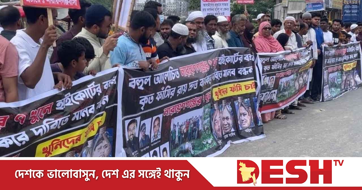 নারায়ণগঞ্জের বহুল আলোচিত চাঞ্চল্যকর ৭ খুনের আসামিদের ফাঁসির রায় দ্রুত কার্যকরের দাবিতে মানববন্ধন করেছেন নিহতের স্বজন ও স্থানীয়রা। শুক্রবার (২৫ এপ্রিল) বেলা ১১টার দিকে ঢাকা-চট্টগ্রাম মহাসড়কের নারায়ণগঞ্জের-সিদ্ধিগঞ্জের মৌচাক এলাকায় ঘণ্টাব্যাপী এই মানববন্ধন অনুষ্ঠিত হয়।