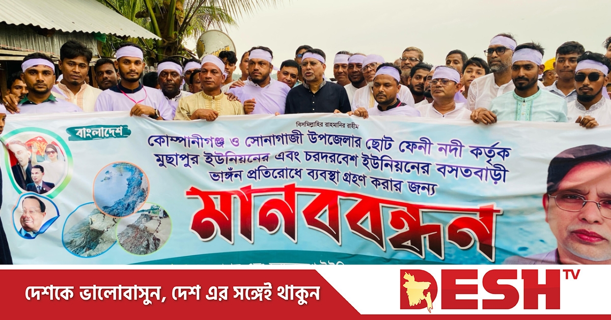 নোয়াখালীর কোম্পানীগঞ্জে ছোট ফেনী নদীর ভয়াবহ ভাঙন রোধে জরুরি ব্যবস্থা নেওয়ার দাবিতে কাপনের কাপড় পরে মানববন্ধন করেছে এলাকাবাসী। এসময় বাড়ি-ঘর, ফসলি জমি হারিয়ে অনেকে কান্নায় ভেঙে পড়েন।