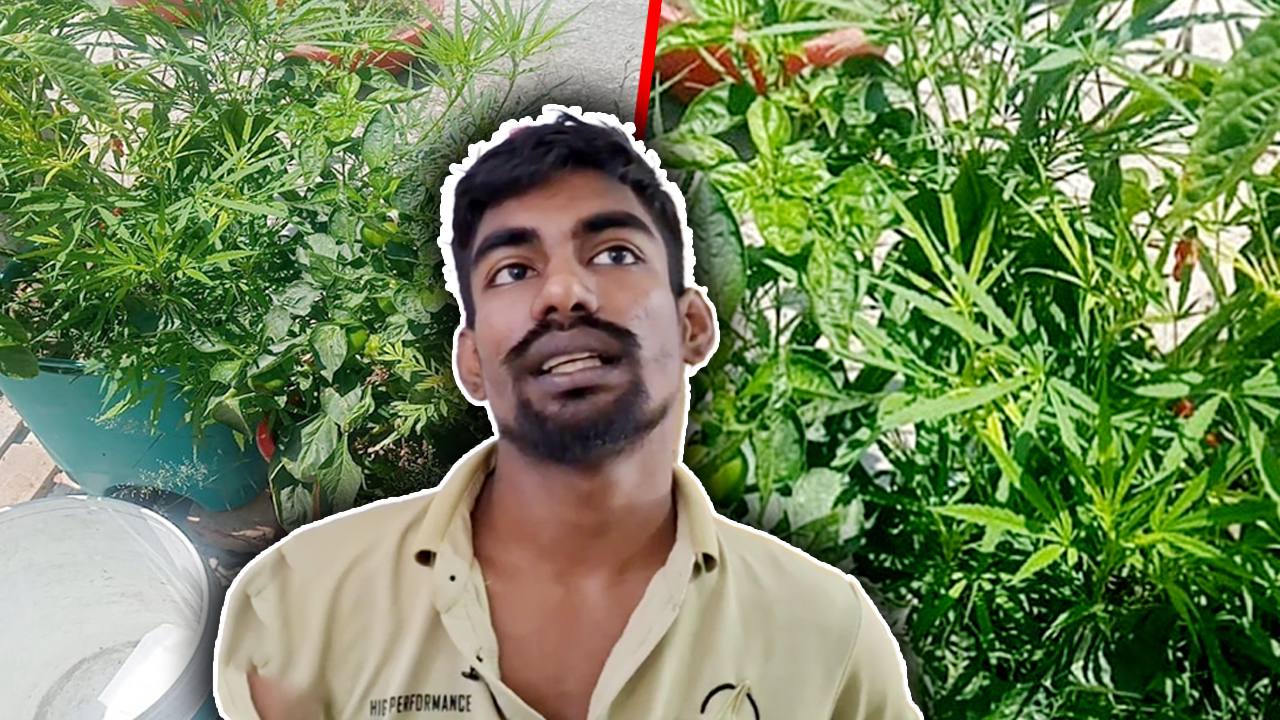 টব ভর্তি লাউ, মরিচসহ বিভিন্ন সবজির সমারোহ সঙ্গে আছে কিছু গোলাপ ফুলের চারা। প্রথম দেখায় মনে হবে এটি কোনো সৌখিন মানুষের ছাদবাগান। কিন্তু একটু চোখ ভালো ভাবে মেললেই দেখা যাবে, সবুজ পাতার ভিড়ে লুকিয়ে রাখা হয়েছে এক নিষিদ্ধ গাছ-গাঁজা!