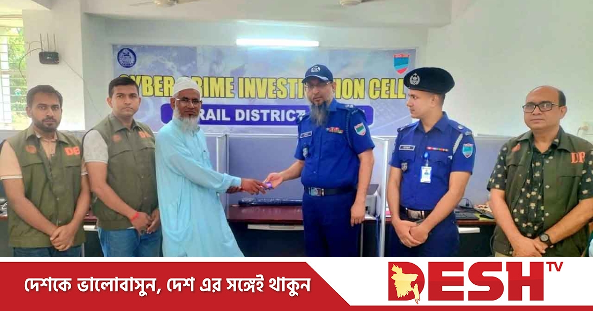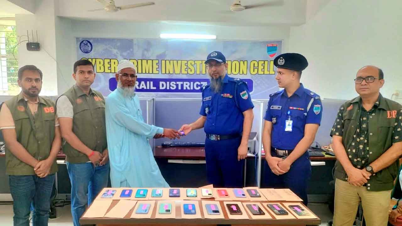 মঙ্গলবার (১৩ মে) দুপুরে জেলা সাইবার ক্রাইম ইনভেস্টিগেশন সেল অফিসে উদ্ধার করা মোবাইল ফোন ও টাকা মালিকদের তুলে দেন পুলিশ সুপার কাজী এহসানুল কবীর।