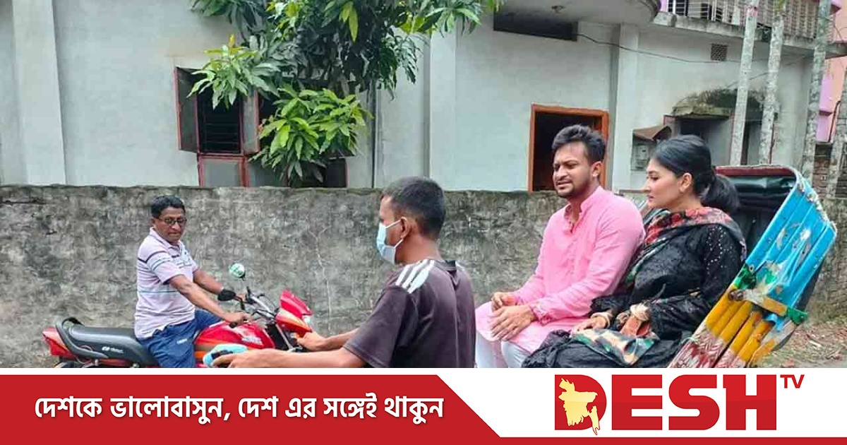 মাগুরায় পবিত্র ঈদুল আজহার পরদিন আজ শুক্রবার সকাল পৌনে নয়টার দিকে ক্রিকেটার সাকিব আল হাসানকে দেখা গেল রিকশায়। সঙ্গে ছিলেন তার স্ত্রী উম্মে আহমেদ শিশির। বাংলাদেশ টেস্ট ও টি-টোয়েন্টি ক্রিকেট দলের অধিনায়ক স্ত্রীকে নিয়ে সকাল সকাল বের হয়েছিলেন ঈদের দাওয়াতে।