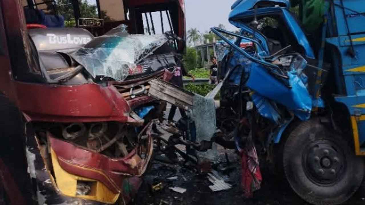 যাত্রীবাহী আসাদ পরিবহনের সঙ্গে মিনি ড্রাম্পার ট্রাকের মুখোমুখি সংঘর্ষের ঘটনায় বিরামপুর থানার অফিসার ইনচার্জ মমতাজুল হক ঘটনাস্থল পরিদর্শন করেন।