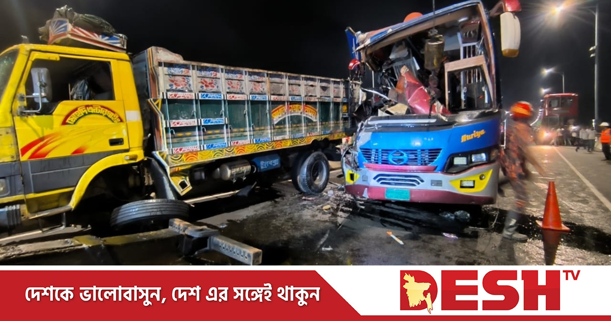 প্রত্যক্ষদর্শীরা জানান, সেতুর ২ নম্বর পিলারের কাছে যাত্রীবাহী একটি বাস ও ট্রাকের সংঘর্ষ ঘটে। এর মধ্যে ইমাদ পরিবহনের ওই বাসটি ঢাকার উদ্দেশে ছেড়ে আসছিল। ট্রাকের পেছনের অংশের সঙ্গে ধাক্কা লেগে বাসের চালকের আসনের অংশটি দুমড়ে-মুচড়ে যায়। এতে দুইজন ঘটনাস্থলেই মারা যান। তবে হতাহতের সংখ্যা আরও বাড়ার আশঙ্কা রয়েছে।