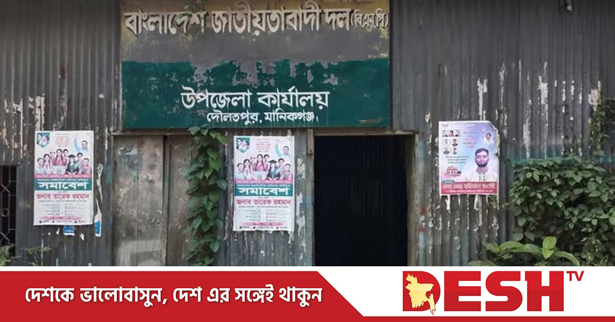 মানিকগঞ্জ-১ আসনের অর্ন্তভুক্ত দৌলতপুর উপজেলা বিএনপির কার্যালয় জীর্ণ ধ্বংসাবশেষে পরিণত হয়েছে। দীর্ঘ ১৮ বছর ধরে এই অফিসটি পড়ে আছে বেহাল অবস্থায়। নেই দরজা, ছেঁড়া ছাউনিতে ঝরে পড়ে বৃষ্টি, দেয়ালে জমেছে ধুলোর আস্তরণ।