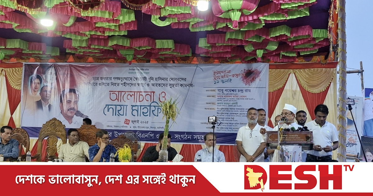 শনিবার (১৯ জুলাই) সন্ধ্যায় নরসিংদীর শিবপুর উপজেলার ইটাখোলা বাসস্ট্যান্ডে ছাত্র জনতার গণঅভ্যুত্থানে ইটাখোলা ট্র্যাজেডিতে শহীদ ও আহতদের স্মরণে আলোচনা ও দোয়া মাহফিলে প্রধান অতিথির বক্তব্যে তিনি একথা বলেন।