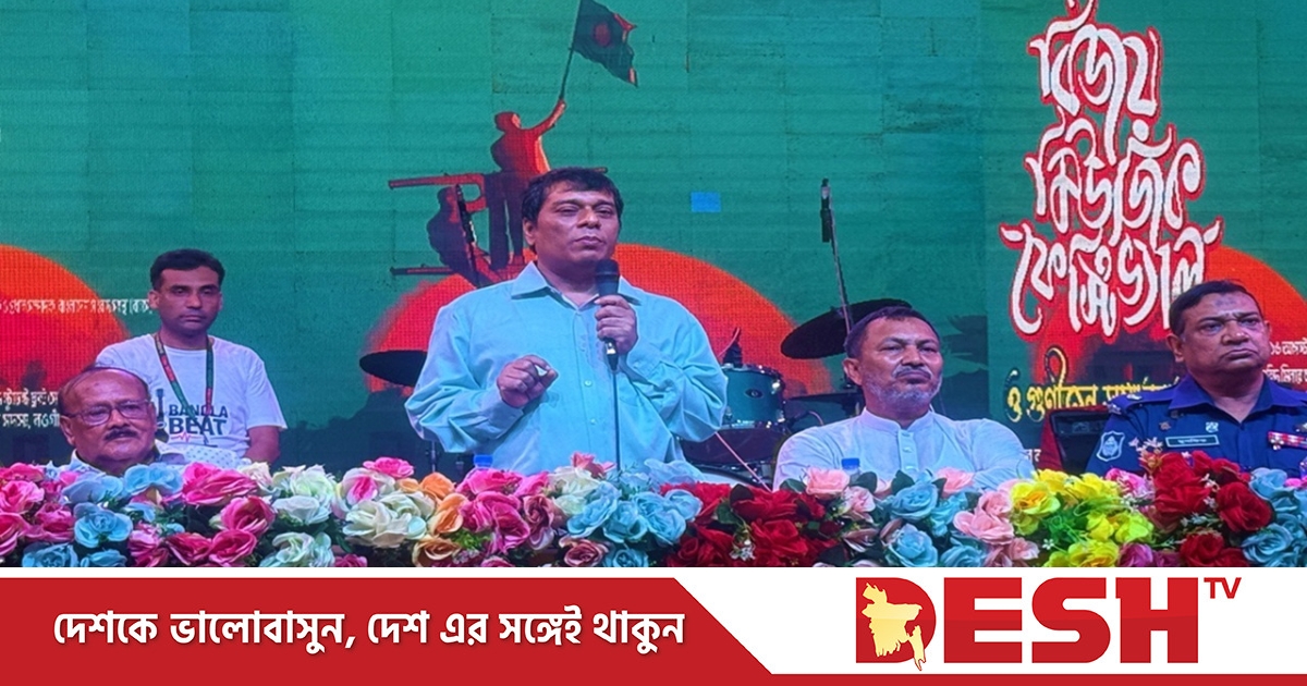 শনিবার (১৬ আগস্ট) সন্ধ্যায় নওগাঁ শহরের মুক্তির মোড়ে ‘সবার আগে বাংলাদেশ’ শীর্ষক বিজয় মিউজিক ফেস্টিভ্যাল ও গুনীজন সম্মাননা প্রদান অনুষ্ঠানে প্রধান অতিথির বক্তব্যে এসব কথা বলেন বাংলাদেশ সংবাদ সংস্থার (বাসস) ব্যবস্থাপনা পরিচালক ও প্রধান সম্পাদক মাহবুব মোর্শেদ।