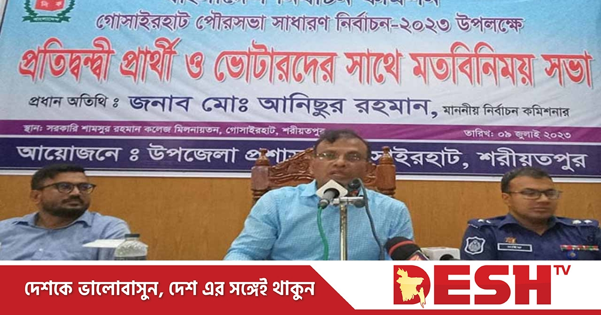 রোববার (৯ জুলাই) বিকেলে গোসারহাট উপজেলা প্রশাসনের আয়োজনে 'গোসাইরহাট পৌরসভা নির্বাচন ২০২৩ প্রতিদ্বন্দ্বী প্রার্থী ও ভোটারদের সঙ্গে মত বিনিময় সভায় সাংবাদিকদের এক প্রশ্নের জবাবে নির্বাচন কমিশনার আনিছুর রহমান এসব কথা বলেন।