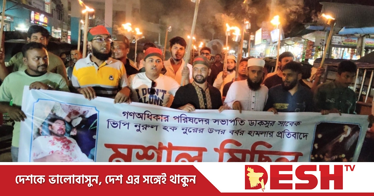 গণঅধিকার পরিষদের সভাপতি ও ডাকসুর সাবেক ভিপি নুরুল হক নূরের ওপর হামলার প্রতিবাদে কুমিল্লার মুরাদনগরে মশাল মিছিল হয়েছে।