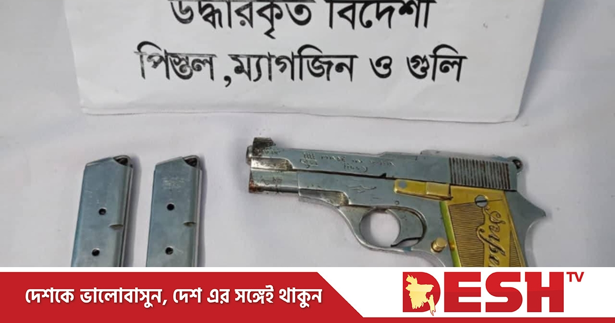 বিদেশি পিস্তল, দুটি ম্যাগজিন ও তিন রাউন্ড গুলি উদ্ধার করা হয়।