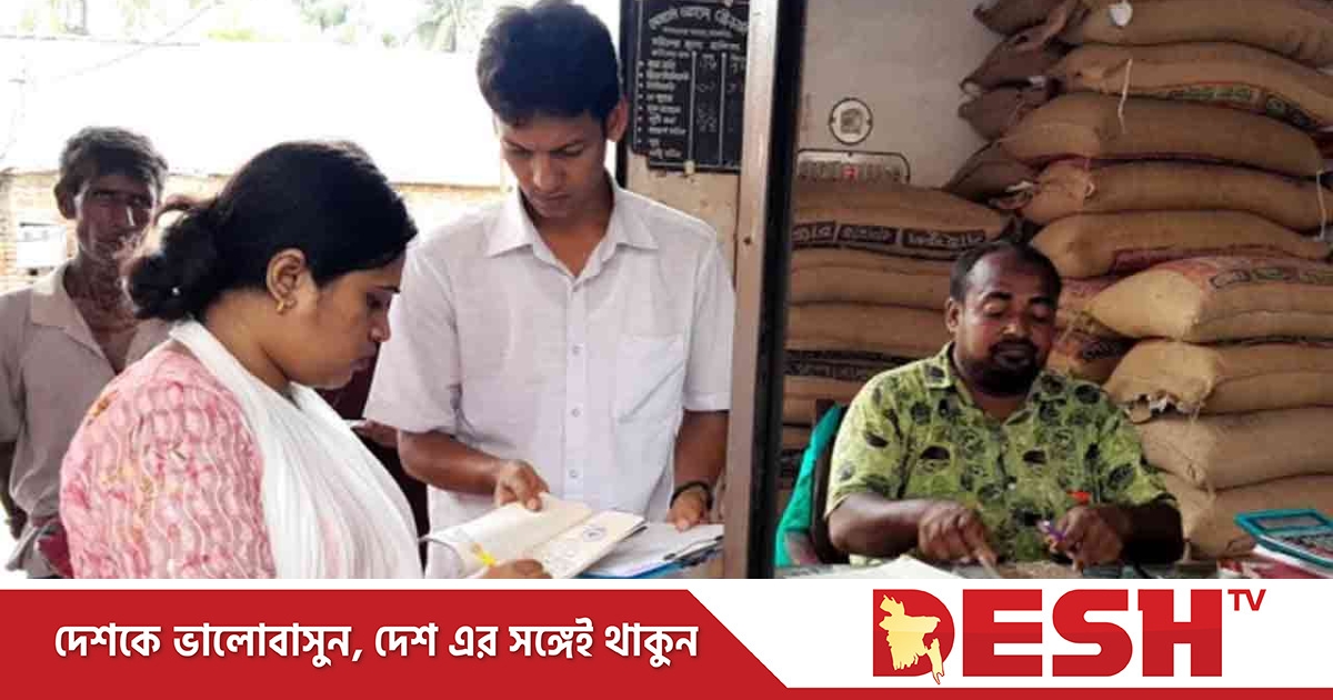 আব্দুল আহাদের চালের দোকানে ভ্রাম্যমাণ আদালত পরিচালনা করেন উপজেলা নির্বাহী কর্মকর্তা রুলী বিশ্বাস।