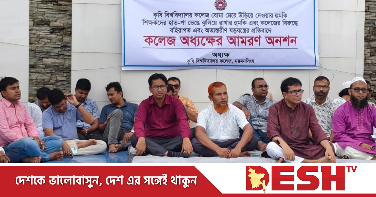 ময়মনসিংহের কৃষি বিশ্ববিদ্যালয় কলেজকে বোমা মেরে উড়িয়ে দেওয়া ও শিক্ষকদের মারধরের হুমকি এবং বহিরাগত ও অভ্যন্তরীণ ষড়যন্ত্রের প্রতিবাদে শহীদ মিনারে আমরণ অনশনে বসেছেন অধ্যক্ষ ড. আতাউর রহমান। তার সঙ্গে অবস্থান করছেন শিক্ষকরাও।