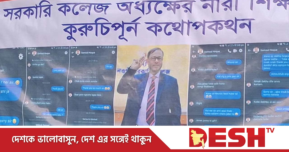 জানা যায়, কলেজের ছাত্রীদের ফেসবুক ম্যাসেঞ্জারে আপত্তিকর মেসেজ পাঠানোসহ অবৈধ সম্পর্কে জড়াতে চাপ প্রয়োগের অভিযোগ উঠেছে অধ্যক্ষ প্রফেসর সামসুল হকের বিরুদ্ধে। সম্প্রতি এ সংক্রান্ত বিভিন্ন স্ক্রিনশট সামাজিক যোগাযোগমাধ্যমে ছড়িয়ে পড়েছে। যেখানে ছাত্রীদের ওড়না ছাড়ানোসহ বিভিন্ন সাজে দেখার আবদার করেন তিনি। এতে নারী শিক্ষার্থীদের সঙ্গে অশোভন আচরণ করায় ফুসে উঠেছে সাধারণ শিক্ষার্থীরা। আজ সকালে কলজেরে গেটে ফেসবুক ম্যাসেঞ্জারে আপত্তিকর মেসেজ পাঠানোর স্ক্রনিশট ঝুলিয়ে মানববন্ধন করা হয়। বিষয়টি যাচাই সাপেক্ষে অভিযুক্তের বিরুদ্ধে শাস্তিমূলক ব্যবস্থা নেওয়ার দাবি জানানো হয়েছে।