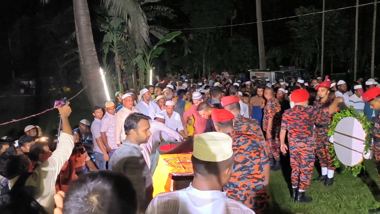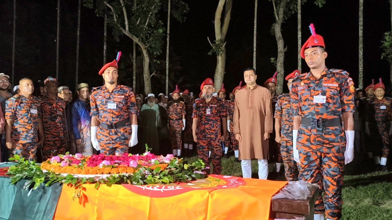 শেরপুরের নকলার গ্রামের বাড়িতে ফায়ার সার্ভিস ও সিভিল ডিফেন্সের ওয়্যারহাউজ ইন্সপেক্টর (অফিসার) খন্দকার জান্নাতুল নাঈমের (৩৭) মরদেহ তার গ্রামের বাড়িতে সমাহিত করা হয়েছে।