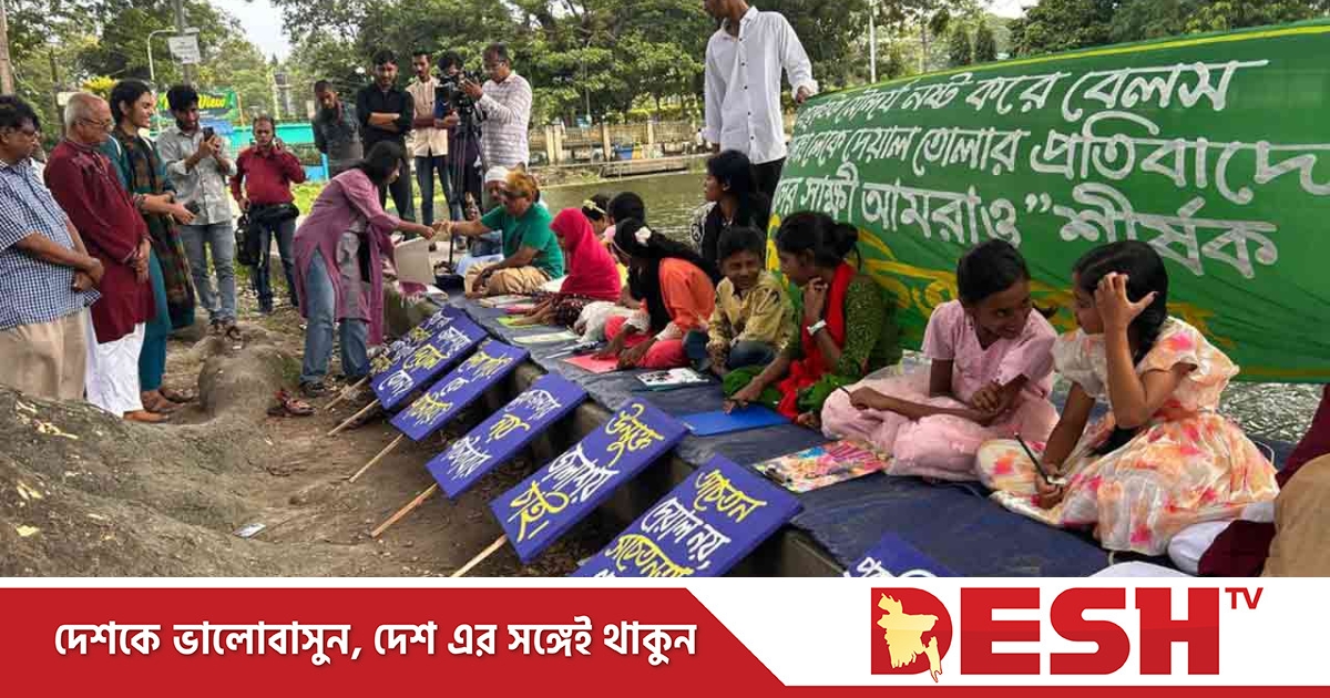 প্রাকৃতিক সৌন্দর্য নষ্ট করে বেলস পার্ক সংলগ্ন লেকে দেয়াল নির্মাণের প্রতিবাদে ‘কালের সাক্ষী আমরাও’ শীর্ষক প্রতিবাদী শিশু চিত্রাঙ্কন অনুষ্ঠিত হয়েছে।