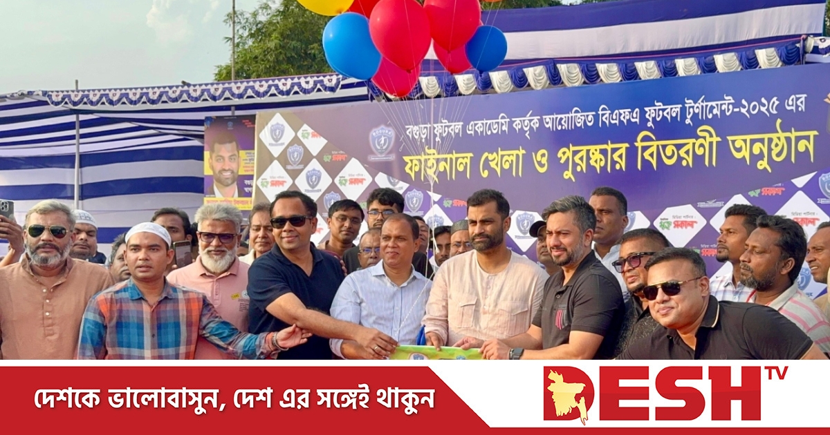 বগুড়া ফুটবল একাডেমির সভাপতি শহিদুল ইসলামের সভাপতিত্বে অনুষ্ঠানে চ্যাম্পিয়ন দলকে একটি ষাঁড় গরু ও রানার্সআপ দলকে একটি ছাগলসহ ট্রফি তুলে দেওয়া হয়।
