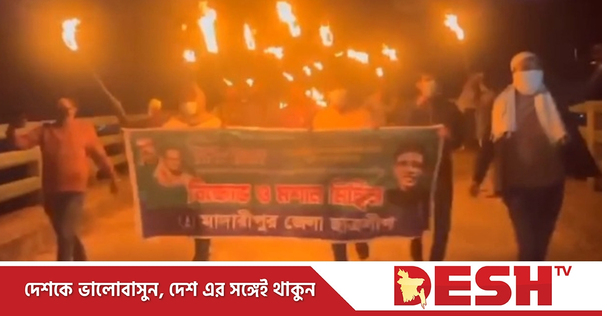 পুলিশ ও স্থানীয় সূত্রে জানা গেছে, সোমবার গভীর রাতে সদর উপজেলার ছিলারচর এলাকার বড় একটি সেতুর ওপরে ১৫ থেকে ১৭ জন ব্যক্তি মশাল হাতে নিয়ে একটি বিক্ষোভ মিছিল বের করেন। এ সময় একটি ব্যানার হাতে নিয়েও তাদের হাটতে দেখা যায়।