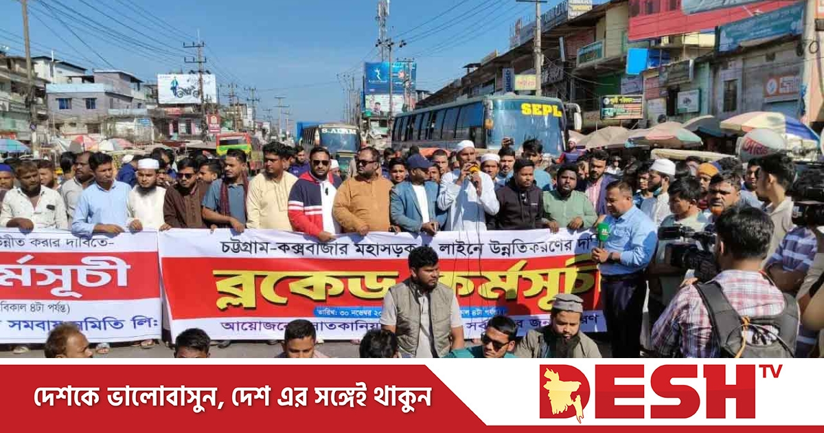 চট্টগ্রামের সাতকানিয়ায় চট্টগ্রাম-কক্সবাজার মহাসড়ক ৬ লেনের দাবিতে ব্লকেড কর্মসূচি পালন করছে স্থানীয়রা।
