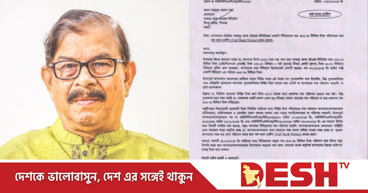 ব্যাংকের নোটিশ অনুযায়ী, ২০১০ সালে ২২ কোটি টাকার বিনিয়োগ অনুমোদন করা হলেও, মুনাফা, চার্জ ও জরিমানা পরিশোধ না করায় বর্তমানে বকেয়া দাঁড়িয়েছে ৩৮ কোটি ৪ লাখ ৭৬ হাজার টাকা।