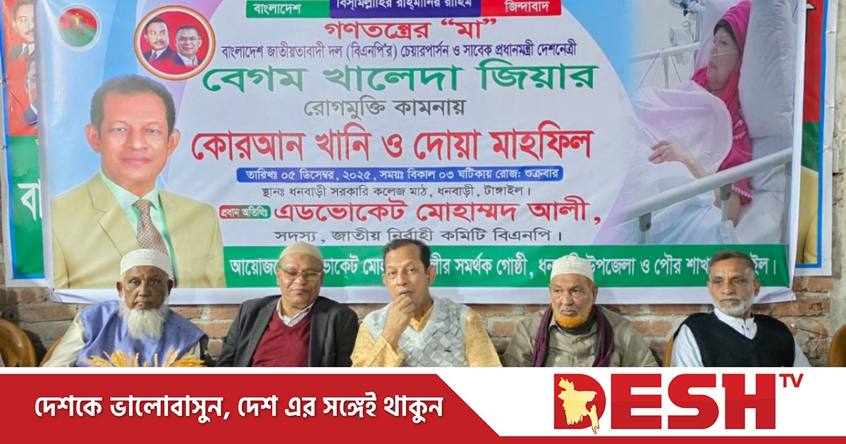 কেন্দ্রীয় বিএনপির নির্বাহী সদস্য অ্যাডভোকেট মোহাম্মদ আলীর সমর্থকদের উদ্যোগে আয়োজিত দোয়া মাহফিলে বিএনপির স্থানীয় নেতাকর্মী ও খালেদা জিয়ার সমর্থকেরা অংশ নেন। অনুষ্ঠানে সভাপতিত্ব করেন ধনবাড়ী পৌর বিএনপির সাবেক সাধারণ সম্পাদক আইন উদ্দিন।
