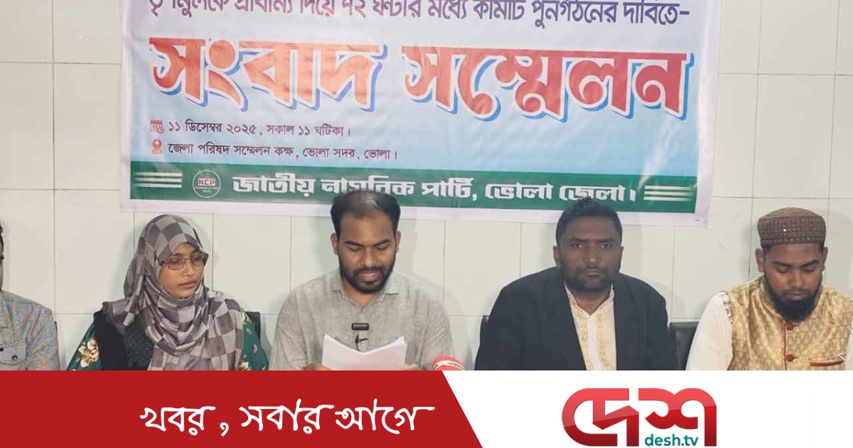 বৃহস্পতিবার (১১ ডিসেম্বর) দুপুর সাড়ে ১২টার দিকে এনসিপির ভোলা জেলা শাখার ব্যানারে জেলা পরিষদ হলরুমে আয়োজিত এক সংবাদ সম্মেলনে এসব দাবি জানানো হয়। সংবাদ সম্মেলনে লিখিত বক্তব্য পাঠ করেন কমিটির যুগ্ম সদস্য সচিব ইয়াসির আরাফাত।