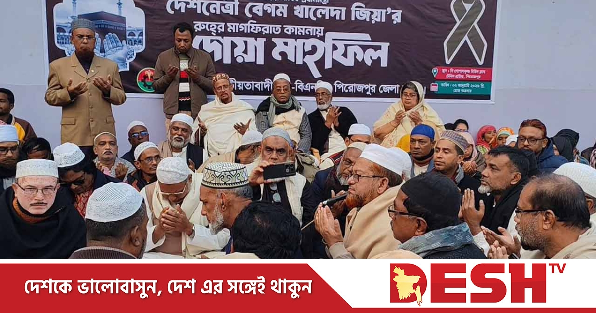 সাবেক প্রধানমন্ত্রী ও বিএনপি'র চেয়ারপারসন বেগম খালেদা জিয়ার রুহের মাগফেরাত কামনায় পিরোজপুরে বিশেষ দোয়া মাহফিল অনুষ্ঠিত হয়েছে।