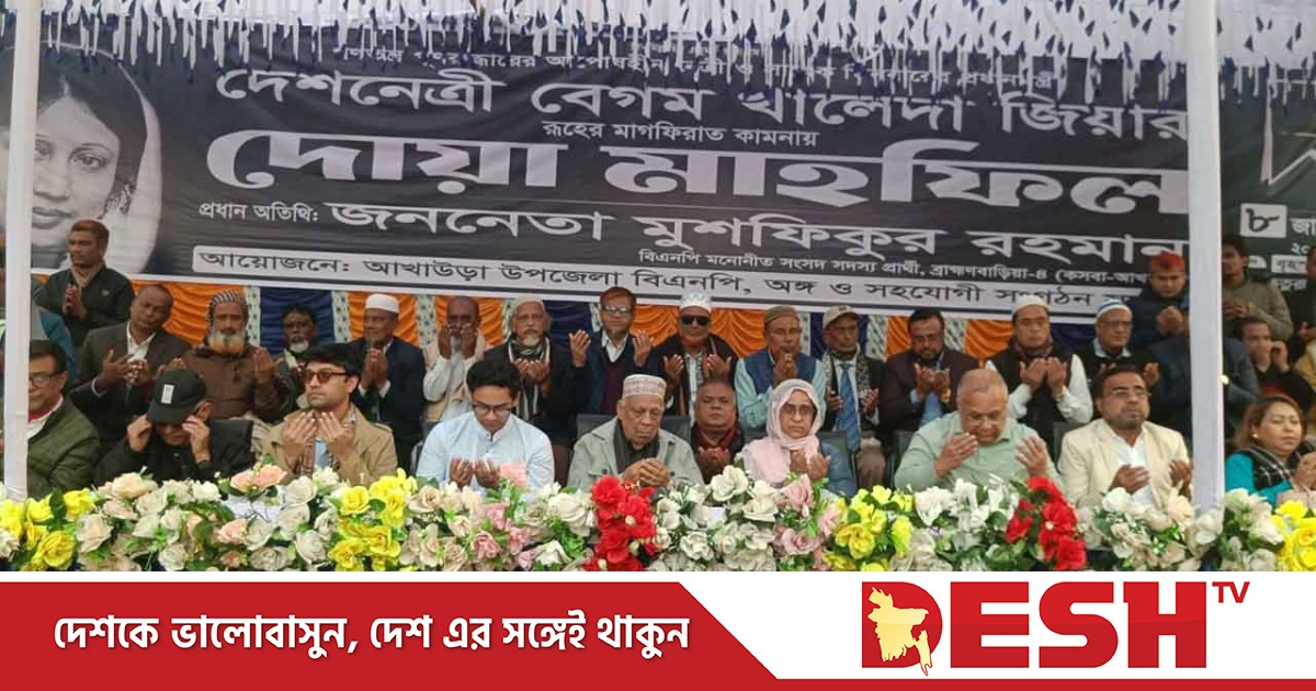 বৃহস্পতিবার (৮ জানুয়ারি) আখাউড়া উপজেলা বিএনপি ও এর অঙ্গ ও সহযোগী সংগঠনের আয়োজনে ধরখার ইউনিয়নের ছতুরাশরীফ উত্তর পাড়া মাঠে এ দোয়া মাহফিল অনুষ্ঠিত হয়।
