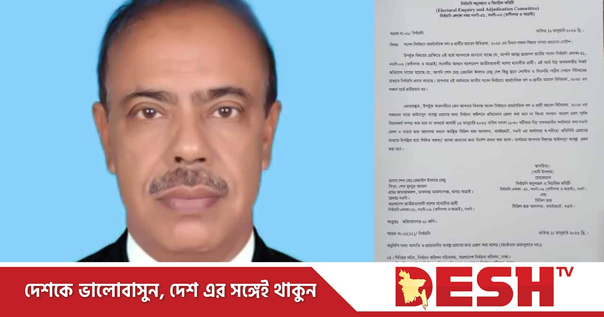 নোটিশে উল্লেখ করা হয়, নির্বাচনি অনুসন্ধান কমিটির কাছে অভিযোগ এসেছে যে শেখ মো. রেজাউল ইসলাম রেজু বিভিন্ন স্থানে পোস্টার ও সিএনজি অটোরিকশার পেছনে স্টিকার ব্যবহার করে নির্বাচনি প্রচার চালাচ্ছেন। এ ধরনের কর্মকাণ্ড জাতীয় সংসদ নির্বাচনে রাজনৈতিক দল ও প্রার্থীর আচরণবিধিমালা ২০২৫-এর লঙ্ঘন বলে প্রতীয়মান হয়।