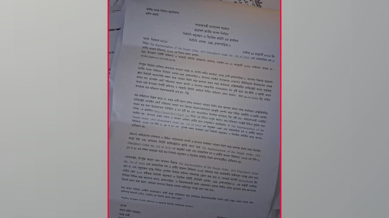 ব্রাহ্মণবাড়িয়া-২ (সরাইল-আশুগঞ্জ ও বিজয়নগরের একাংশ) আসনে আচরণবিধি লঙ্ঘন করায় স্বতন্ত্র প্রার্থী রুমিন ফারহানার কাছে এবার ব্যাখ্যা চেয়ে কারণ দর্শানোর নোটিশ দিয়েছে নির্বাচনী অনুসন্ধান ও বিচারিক কমিটি এ চিঠি দিয়েছে।