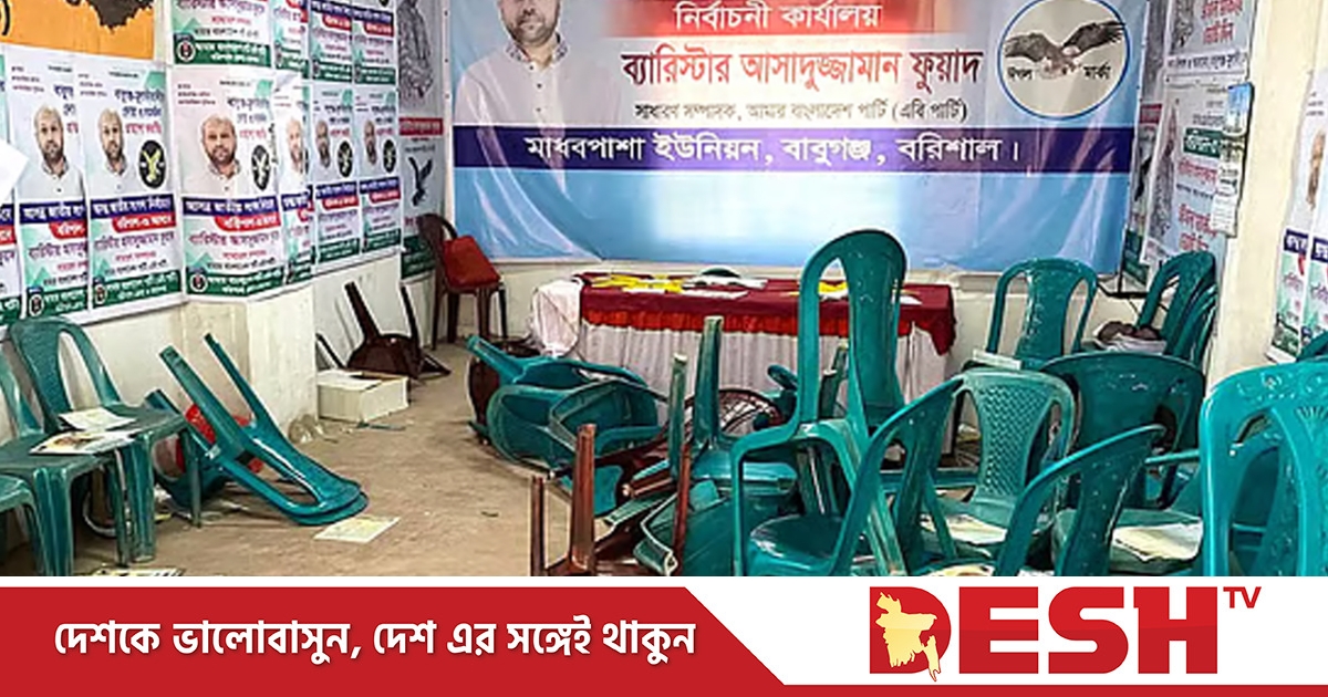বরিশাল-৩ আসনের ১১ দলীয় জোট প্রার্থী ও আমার বাংলাদেশ (এবি) পার্টির সাধারণ সম্পাদক আসাদুজ্জামান ফুয়াদের নির্বাচনী কার্যালয় ভাঙচুরের অভিযোগ উঠেছে।