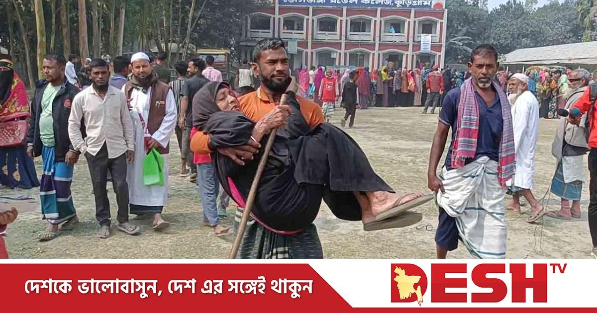 সদর উপজেলার ভোগডাঙ্গা ইউনিয়নের ক্লিনিকপাড়া এলাকার বাসিন্দা আছিমন বেওয়াকে কোলে নিয়ে কেন্দ্রে প্রবেশ করেন তার নাতি এরশাদুল হক। বয়সজনিত কারণে নড়াচড়া করতে না পারলেও ভোট দেওয়ার আগ্রহে ভাটা পড়েনি তার।
