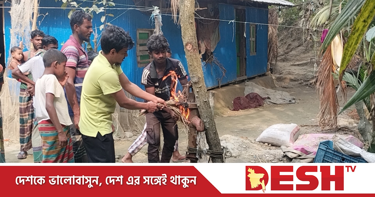 স্থানীয়রা জানান, ৩ দিন আগে জেবল হক মাঝি বাড়িতে স্যালো নলকূপ বসানো হয়। মাটির ৭০ ফুট নিচে পাইপ বসানোর কাজ শেষ হওয়ার পর পানি উত্তোলনের চেষ্টা করলে নলকূপ থেকে পানি বের না হয়ে সো সো শব্দসহ গ্যাস বের হতে থাকে। পরীক্ষা করার জন্য স্থানিরা লাইটার দিয়ে আগুন ধরালে নলকূপ থেকে ধাউ ধাউ করে আগুন জ্বলে উঠে।