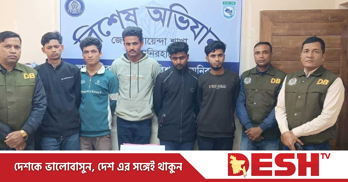গ্রেফতাররা হলেন- কালীগঞ্জ উপজেলার চন্দ্রপুর ইউনিয়নের উত্তর বত্রিশ হাজারী গ্রামের মো. নাজমুল ইসলাম (২১), মো. রফিকুল ইসলাম আকাশ (২০), মো. মেহেদী হাসান (১৯), একই ইউনিয়নের লতাবর এলাকার মো. আশরাফুল ইসলাম আরিফুল (২৪) এবং নোয়াখালীর সুধনচর থানার হাজীগ্রামের মো. আফছার আলী (২৩)।