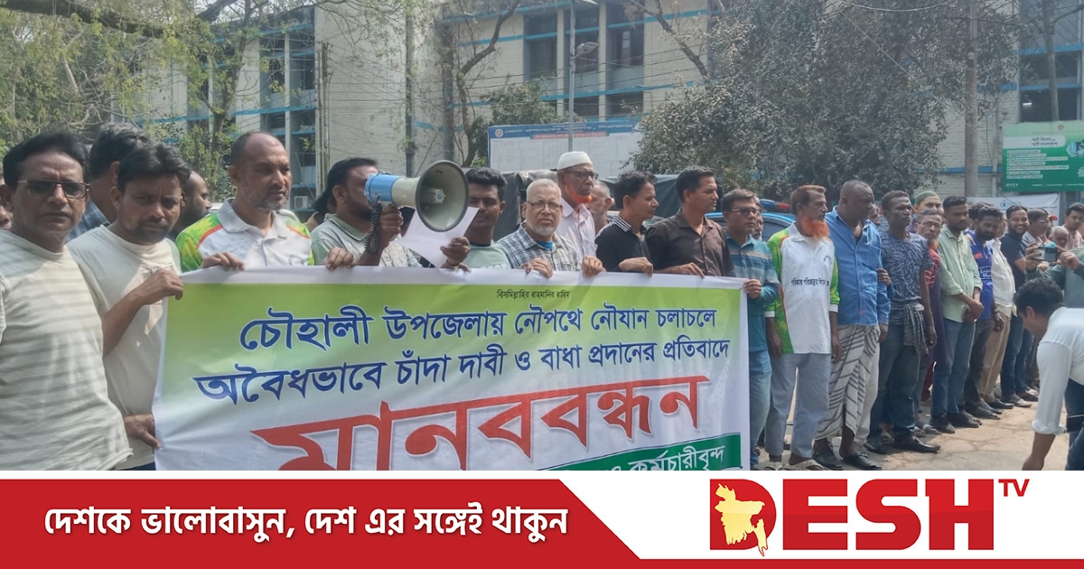 সিরাজগঞ্জের চৌহালী উপজেলায় নৌপথে বালুবাহী নৌযান চলাচলে চাঁদা দাবি ও বাধা দেওয়ার অভিযোগে মানববন্ধন করেছেন শ্রমিক ও কর্মচারীরা।