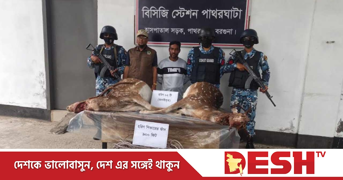 বন বিভাগের তথ্য অনুযায়ী, সোমবার (২ মার্চ) রাতের অভিযানে পাথরঘাটা সদর ইউনিয়নের বাদুরতলার খাল এলাকা থেকে দুটি জবাই করা হরিণ, শিকারের ৯টি ফাঁদ এবং একটি ইঞ্জিনচালিত ট্রলারসহ মো. হানিফাকে (৪৫) আটক করা হয়। পরে ভ্রাম্যমাণ আদালতে হাজির করলে পাথরঘাটা সিনিয়র জুডিশিয়াল ম্যাজিস্ট্রেট আদালতের বিচারক মো. পনির শেখ তাকে এক বছরের কারাদণ্ড ও ৫০ হাজার টাকা জরিমানা করেন।