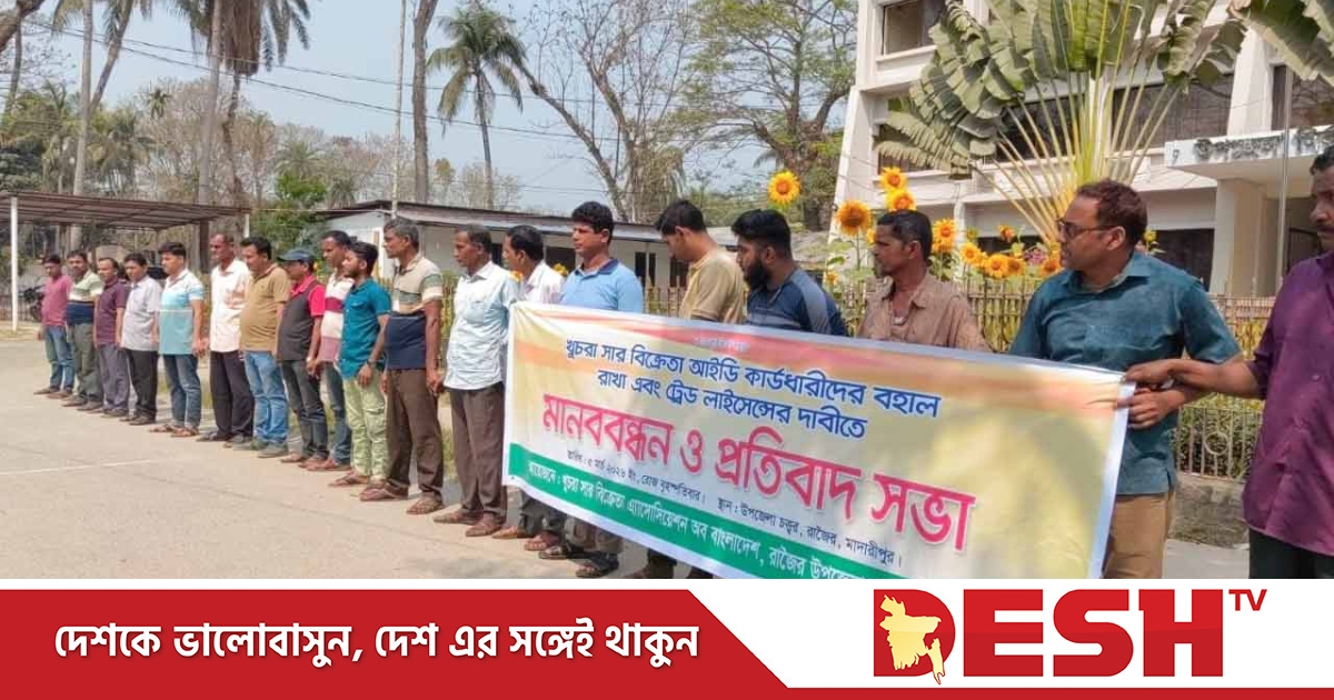 মাদারীপুরের রাজৈরে ১০৬ জন খুচরা সার বিক্রেতার আইডি কার্ড ও ট্রেড লাইসেন্স বহালের দাবিতে মানববন্ধন, প্রতিবাদ মিছিল ও ইউএনও বরাবর স্মারকলিপি প্রদান করেছেন সার বিক্রেতারা।