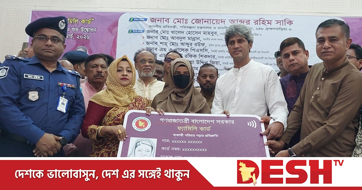 মঙ্গলবার (১০ মার্চ) বেলা সাড়ে ১১টায় বাঞ্ছারামপুর উপজেলা সদরের জগন্নাথপুর অডিটোরিয়ামে ফ্যামিলি কার্ড বিতরণ কার্যক্রমের উদ্বোধন করেন পরিকল্পনা প্রতিমন্ত্রী ও ব্রাহ্মণবাড়িয়া-৬ (বাঞ্ছারামপুর) আসনের এমপি জোনায়েদ সাকি।
