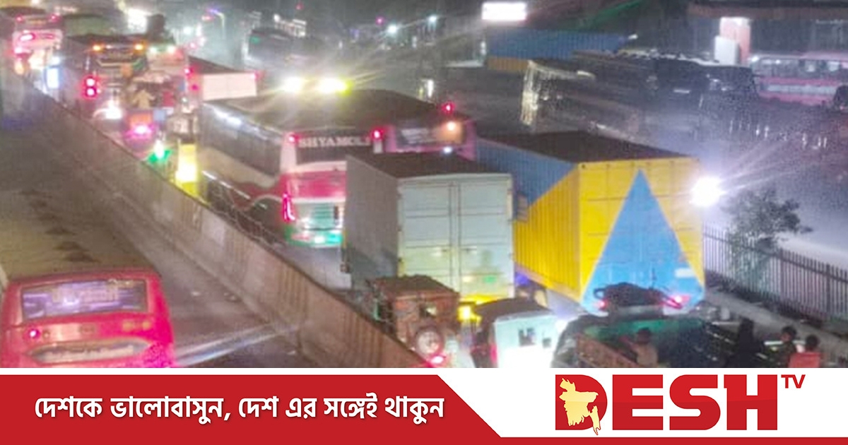 বুধবার (১৮ মার্চ) ভোর ৪টার দিকে এই মহাসড়কের প্রায় ১০ কিলোমিটার এলাকাজুড়ে ছিল যানবাহনের দীর্ঘসারি।