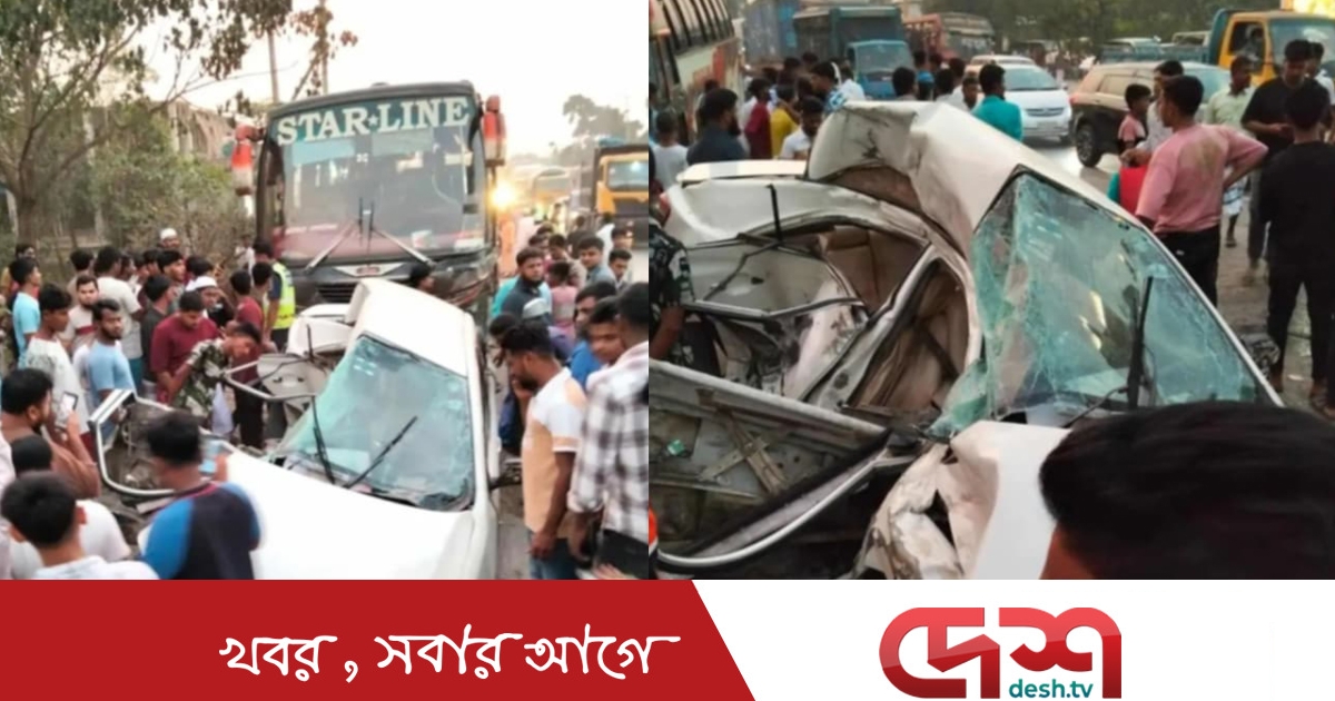 পুলিশ জানায়, স্টারলাইন পরিবহনের একটি দ্রুতগামী বাস একটি প্রাইভেটকারকে ধাক্কা দিলে সেটি দুমড়ে-মুচড়ে যায়। ঘটনাস্থলেই প্রাইভেটকারের চার আরোহীর মৃত্যু হয়।