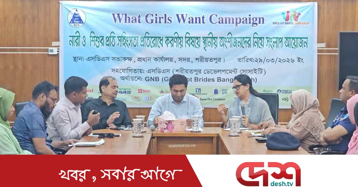 রোববার (২৯ মার্চ) দুপুরে শহরের এসডিএস সম্মেলন কক্ষে গার্লস নট ব্রাইডসের অর্থায়নে এই সংলাপের আয়োজন করে শরীয়তপুর ডেভেলপমেন্ট সোসাইটি (এসডিএস)।