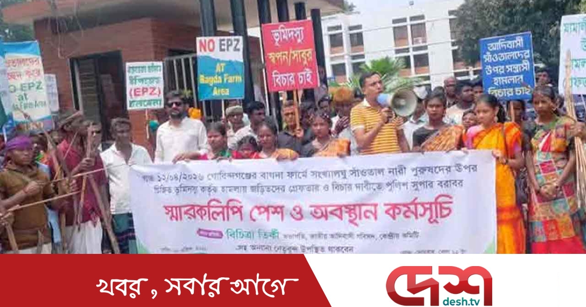 গাইবান্ধার গোবিন্দগঞ্জে বাগদা ফার্ম এলাকায় সাঁওতাল সম্প্রদায়ের নারী-পুরুষদের ওপর হামলার প্রতিবাদে বিক্ষোভ সমাবেশ ও অবস্থান কর্মসূচি পালন করেছে জাতীয় আদিবাসী পরিষদ।
