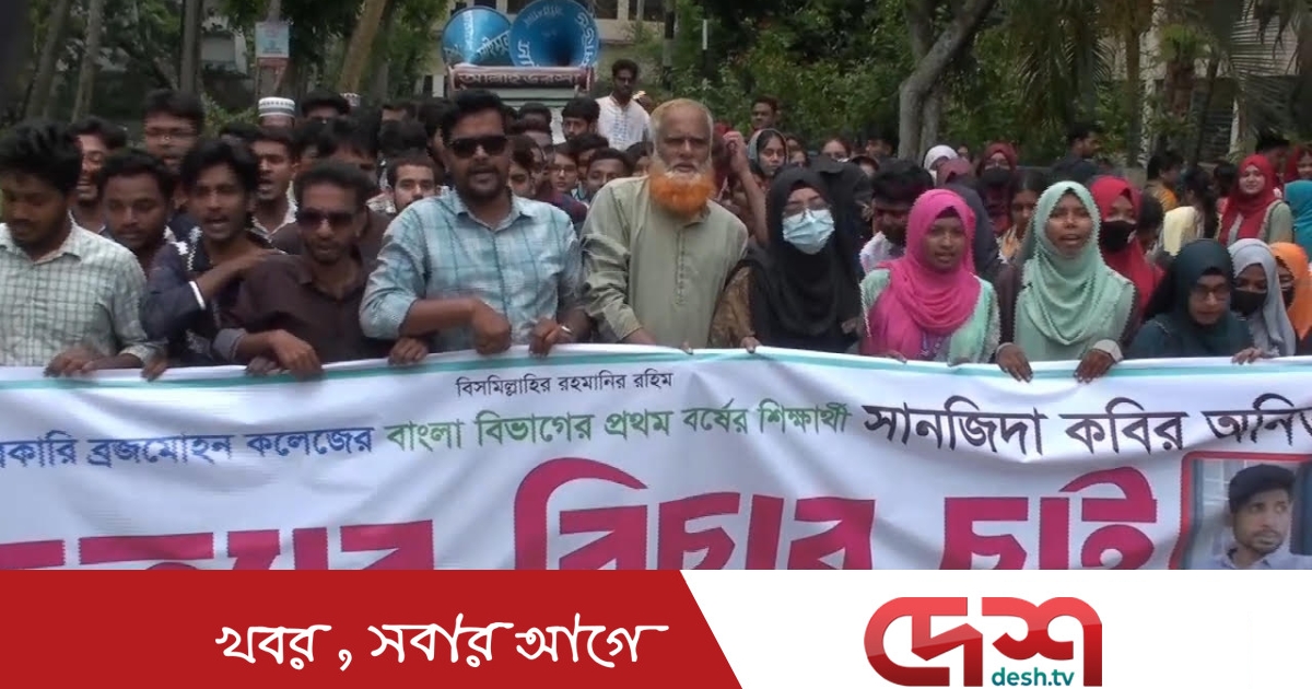 বরিশাল সরকারি ব্রজমোহন (বিএম) কলেজের অনার্স প্রথম বর্ষের শিক্ষার্থী সানজিদা কবির আনিতা হত্যার বিচার দাবিতে মানববন্ধন ও বিক্ষোভ মিছিল করেছে কলেজের শিক্ষার্থীরা।