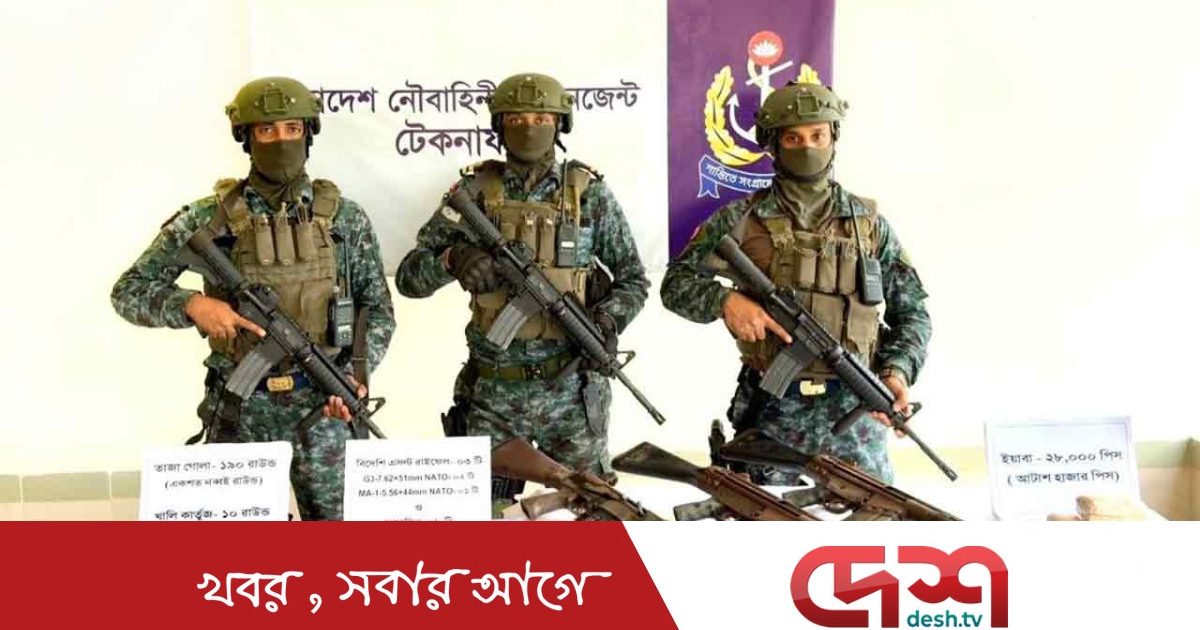 কক্সবাজারের টেকনাফে বিশেষ অভিযান চালিয়ে বিদেশি আগ্নেয়াস্ত্র, বিপুল পরিমাণ গোলাবারুদ এবং ইয়াবা উদ্ধার করেছে বাংলাদেশ নৌবাহিনী।