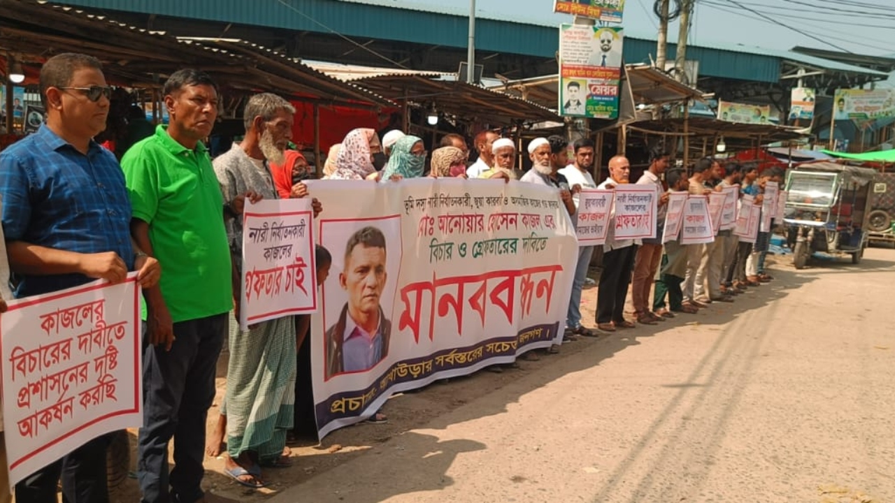 ব্রাহ্মণবাড়িয়ায় জমি দখল ও হামলার প্রতিবাদে মানববন্ধন
