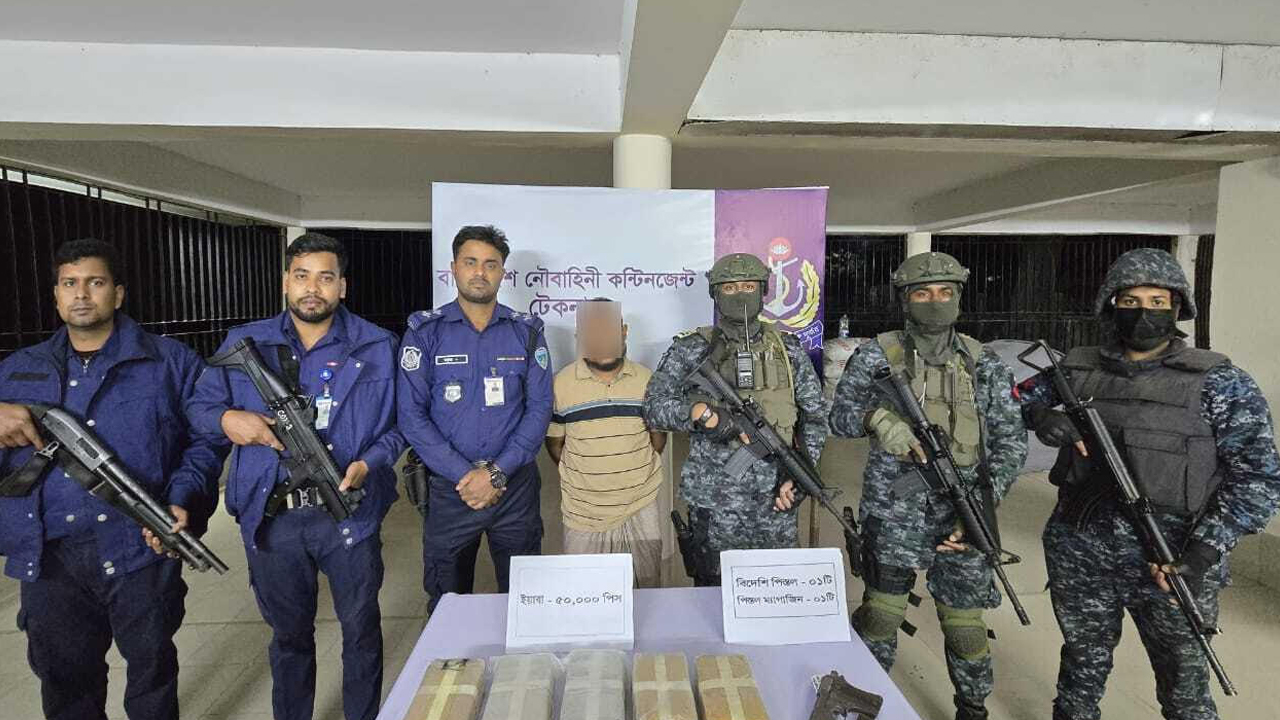 কক্সবাজারের টেকনাফে পুলিশ ও নৌবাহিনীর যৌথ অভিযানে একটি বিদেশি পিস্তল এবং ৫০ হাজার পিস ইয়াবাসহ এক অস্ত্রধারী সন্ত্রাসীকে গ্রেপ্তার করা হয়েছে। গ্রেপ্তার হওয়া ব্যক্তি একাধিক মামলার পলাতক আসামি।সোমবার (১৯ জানুয়ারি)...