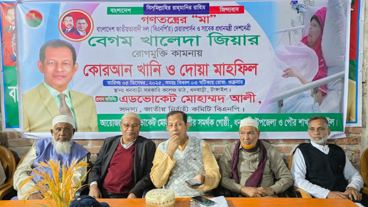 টাঙ্গাইলের ধনবাড়ীতে বিএনপি চেয়ারপারসন বেগম খালেদা জিয়ার দ্রুত সুস্থতা কামনায় নফল রোজা, গণ ইফতার ও দোয়া মাহফিল অনুষ্ঠিত হয়েছে।